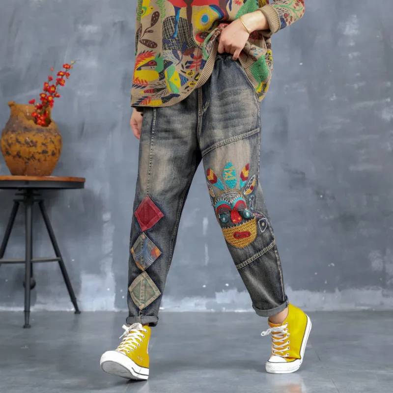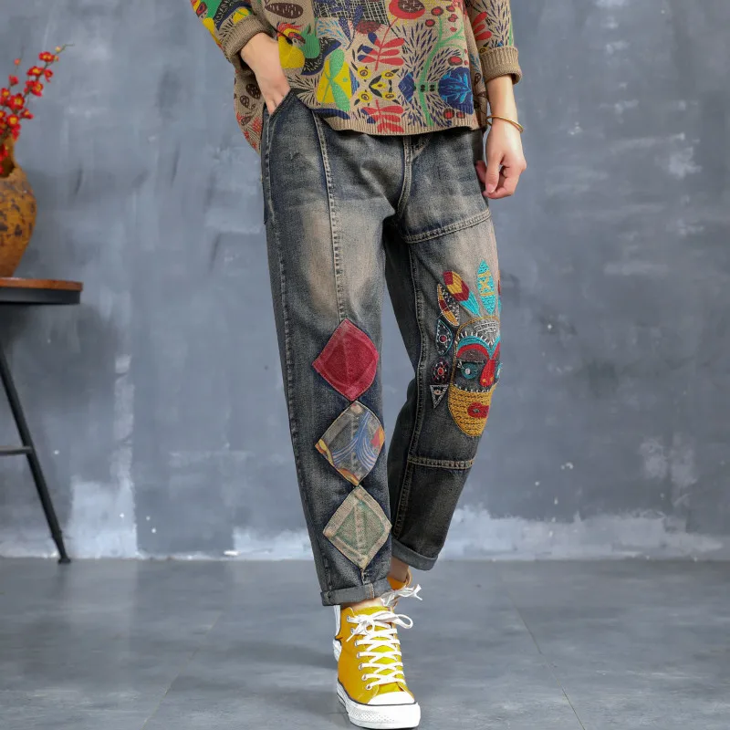 Best Max LuLu Autumn 2019 Korean Fashion Ladies Patchwork Denim Pants Women Embroidery Vintage Jeans Loo